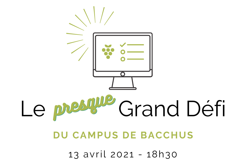 Dans sa forme traditionnelle, le Grand Défi du Campus de Bacchus est un concours de dégustation de vins à l’aveugle, organisé tous les ans par l’Institut Georges Chappaz de la vigne et du vin en Champagne – Université de Reims (lire ici). Ce challenge réunit depuis dix ans, plus d’une centaine d’étudiants autour de la même passion. Malheureusement, la période que nous traversons ne nous a pas permis d’organiser la dixième édition, prévue en mars 2020. Ayant à cœur de proposer un événement et pour garder l’esprit convivial de ce moment, l’Institut Georges Chappaz propose cette année, un concours en ligne autour des connaissances du monde de la vigne et du vin : Le « Presque » Grand Défi du Campus de Bacchus. Mardi 13 avril 2021 – 18h30